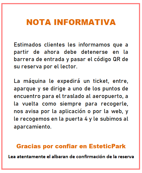 En caso contrario perderá la reserva a menos que la modifique 2 horas antes de la entrada del vehículo.